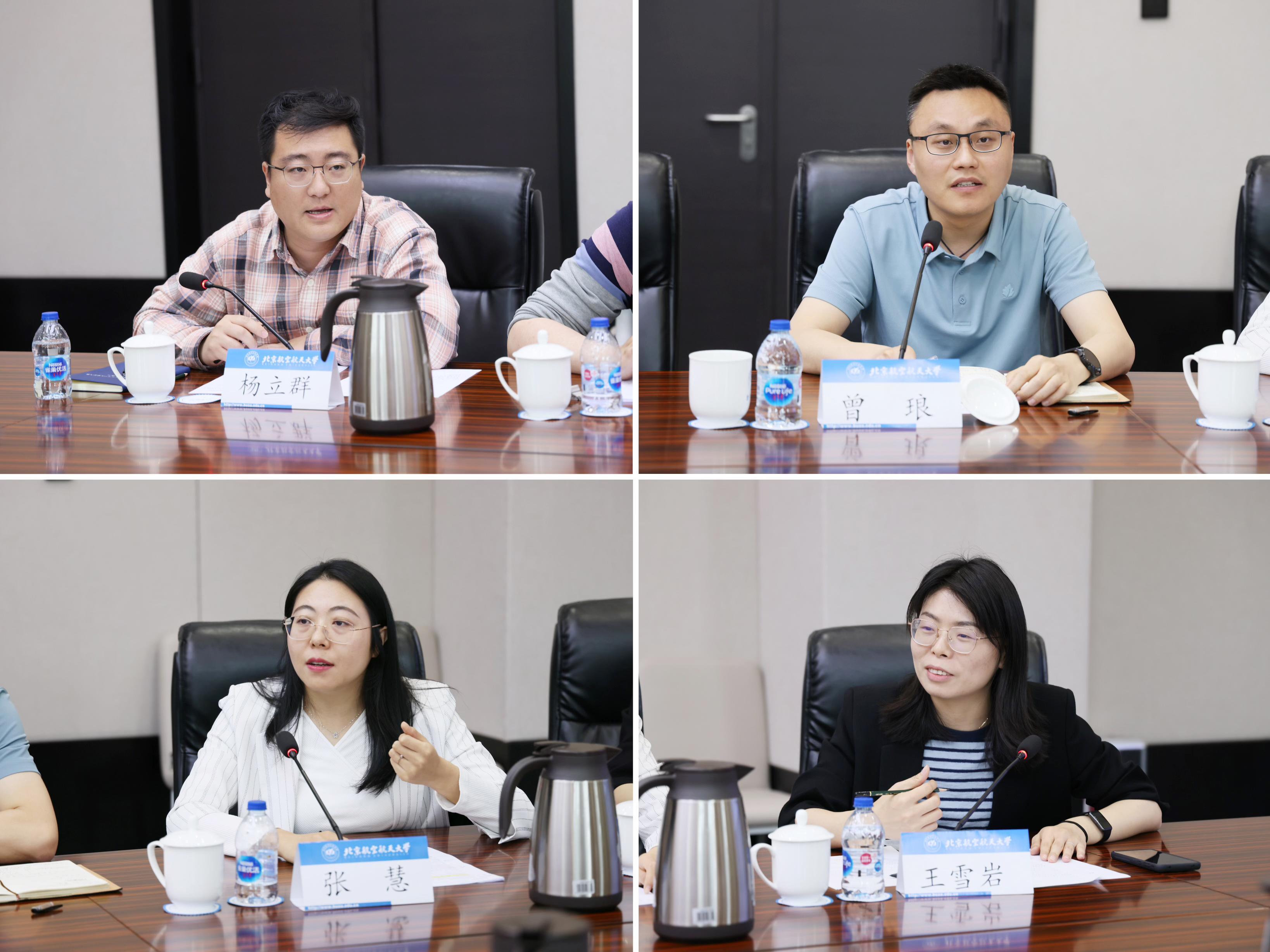 孙联文围绕团队以老带新分享认识体会,并建议对相关评审机制改进。张弛表达了对学生评教的重视,提出了有关线上授课内容和认定标准的意见建议。吴欣童分享了青年教师成长的相关体会。岳蜀华对慕课等线上授课形式取得效果表示肯定,提议积极利用线上授课形式,提升学生学习效率。毛剑分享了作为学院督导组成员观察到的教师授课情况,并结合部分实验课程教师投入精力较大问题,建议根据类型对实验课进行学时折算。孙钰分享了提高课堂互动率,提升教学效果的丰富探索经验。杨立群建议将最新科研成果写进教材,加大对建设新鲜度高、前沿性强教材的支持力度。曾琅对数智赋能课程建设和毕业设计谈了个人设想。张慧建议学校增加虚拟仿真课程和相关教材赛道,并围绕实验课程学时认定问题提出建议。王雪岩分享了课堂中与学生加强互动的方式方法。
