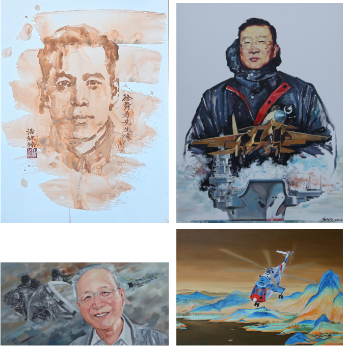 现任教于北航新媒体艺术与设计学院的宫浩钦教授作为本次画展的主创者,介绍这次展出的 52 幅作品是从他创作的一千多幅航空绘画作品中精选的,内容包括徐舜寿、顾诵芬、吴大观等航空大家和罗阳等英模代表人物的素描和油画肖像,以《千里江山图》为背景的新时代航空装备等。宫浩钦还为观展嘉宾详细讲述每幅作品的创作故事,传递出作品背后的航空历史、航空文化、航空科技蕴涵的精神力量。