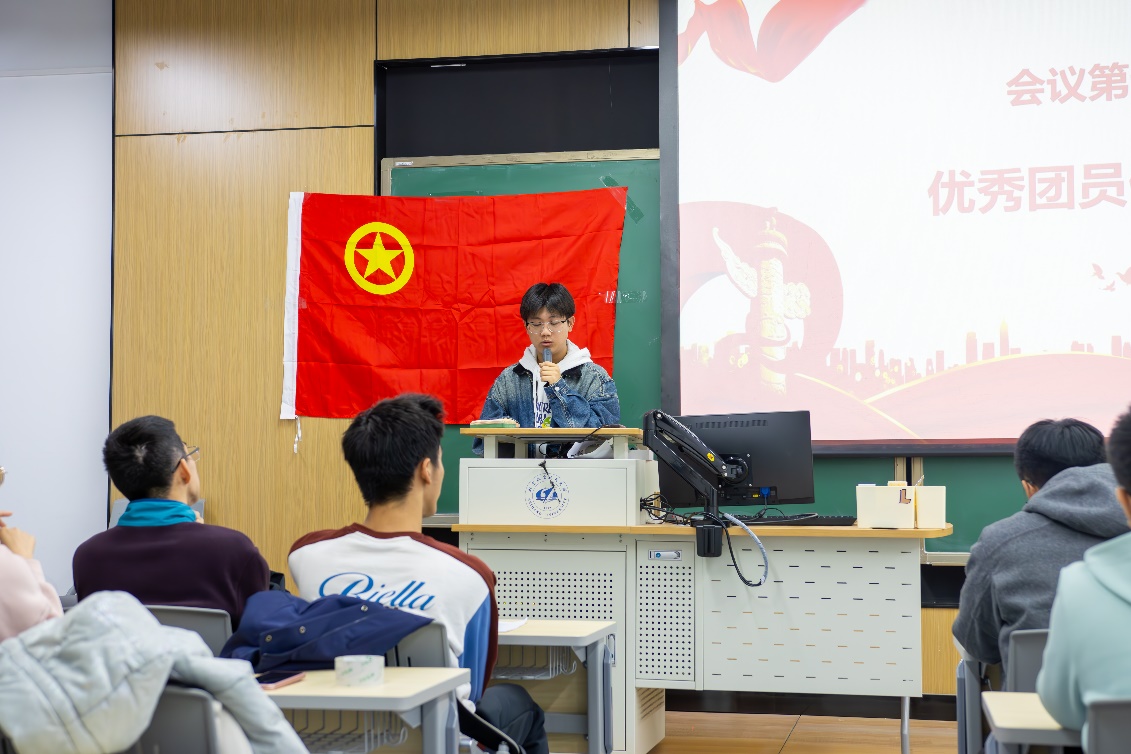 随后,优秀团员代表张烁祎同学发言,鼓励大家树立正确的价值观,勇于创新,将个人理想与国家发展结合,传承北航“空天报国”精神,为实现中国式现代化、复兴中华民族而努力奋斗。