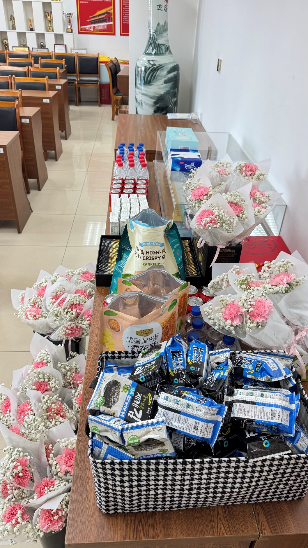为让教职工在轻松愉悦的氛围中学习交流,院工会特别准备了精致茶歇和美丽花束,各种小零食、饮料、饮用水等点缀其间,老师们在互动间隙品茗畅谈,分享变美心得。活动结束后,不少老师表示:“既学到了实用的化妆技巧,又感受到工会的贴心安排,这样的节日活动既有意义又有温度!”