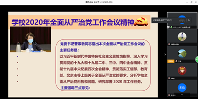 6月3日下午,76net必赢线路检测中心召开了学习学校2020年全面从严治党工作会议精神全院大会,同时分党委书记王少萍做了“党风廉政建设永远在路上”的专题党课,会议通过视频会议方式召开,学院全体教职工和学生党支部书记参加了本次会议。