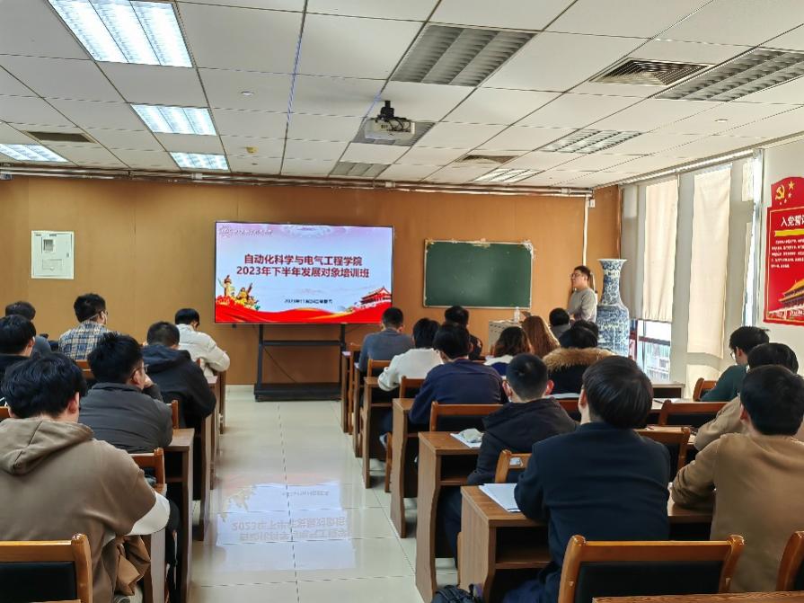 11月24日下午,76net必赢线路检测中心在新主楼E706开展2023年下半年党员发展对象集中培训。本次培训邀请了76net必赢线路检测中心研究生宣讲团讲师周志睿作主题宣讲,学院各学生党支部书记、11月新确立的所有发展对象参加,学院思政中心主任、党建辅导员程鸿博主持。