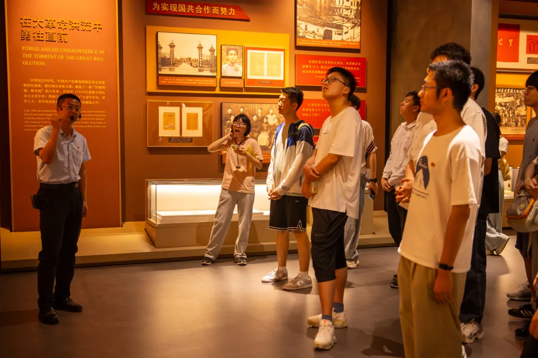 团员青年随后参观“中国青年在党的领导下为实现中华民族伟大复兴而不懈奋斗”主题展览。展览以“紧跟党打破旧世界”“追随党建设新中国”“听党号召搏击改革潮”“青春向党奋进新时代”四大板块,串联起中国青年运动的百年征程。