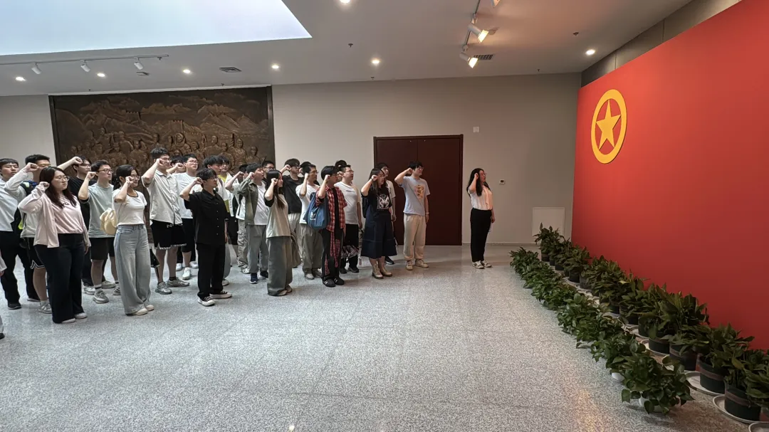 “我志愿加入中国共产主义青年团……”在乔娇带领下,团员青年面向团旗庄严宣誓。激昂誓言在历史展馆前回荡,既是对革命先辈的精神致敬,更是北航自动化青年“为中国式现代化挺膺担当”的庄严宣告。