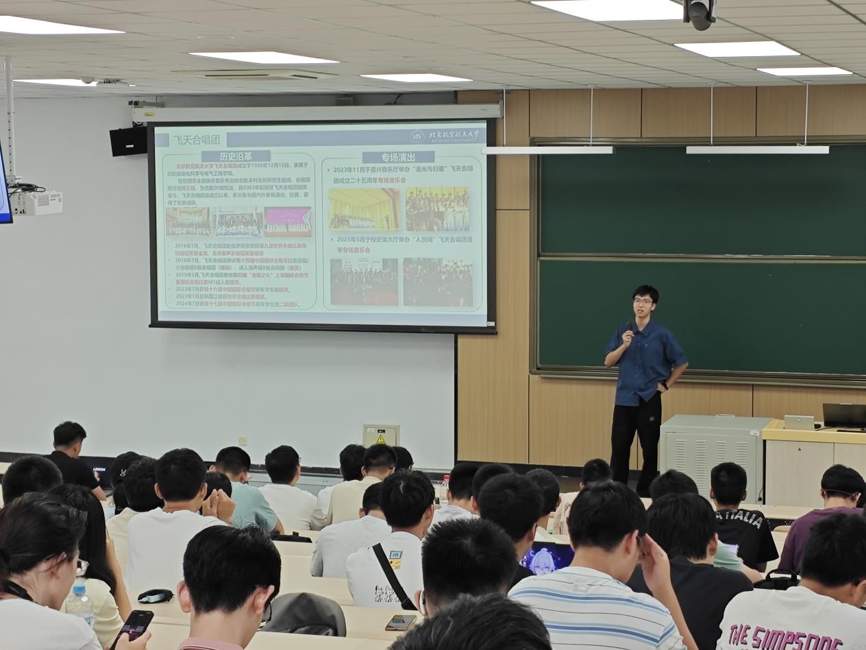 孙孟旭学长则聚焦课程学习与竞赛科研展开分享。科创竞赛方面,孙学长以他参加“卓翼杯”的经验为例,讨论竞赛在综测加分之余对于个人能力的培养与提升。在进组科研方面,他结合自身经验给出实用建议:主动通过学院平台了解导师研究方向,大胆沟通争取进组机会,在参与科研项目的过程中逐步培养科学思维、探索学科兴趣点。同时,作为院体育部副部长,他热情号召同学们走出教室,在体育竞技中感受团队协作的力量,展现青春活力;而作为一名中共党员,他也以身作则,积极投身社会实践,用实际行动践行 “把论文写在祖国大地上” 的初心,为同学们树立了全面发展的榜样。
