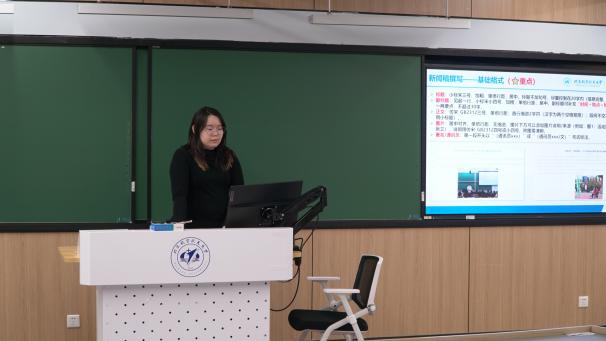 研究生会宣传部部长王睿莹讲解了新闻稿撰写的基本格式与规范,对公文写作的要点进行了剖析。