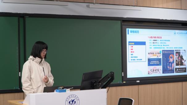 学生会宣传一部部长魏猛宇讲解了推送制作的完整流程,涵盖内容撰写、排版美化到发布规范等。